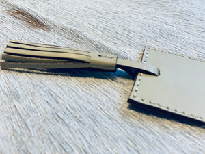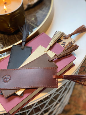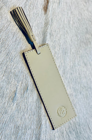 Bokmerke i bøffelskinn med frynse.